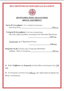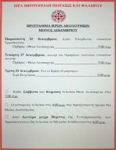 ΤΗΝ ΤΕΤΑΡΤΗ 17 ΔΕΚΕΜΒΡΙΟΥ ΔΕ ΘΑ ΤΕΛΕΣΘΕΙ ΘΕΙΑ ΛΕΙΤΟΥΡΓΙΑ