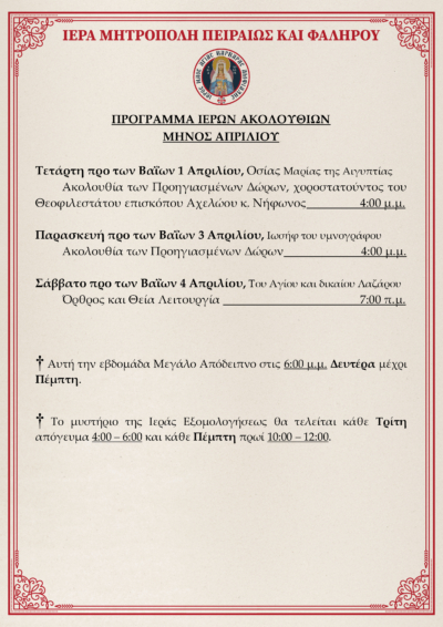 ΣΕΒΑΣΜΙΩΤΑΤΟΣ ΜΗΤΡΟΠΟΛΙΤΗΣ ΠΕΙΡΑΙΩΣ κ.κ. ΣΕΡΑΦΕΙΜ